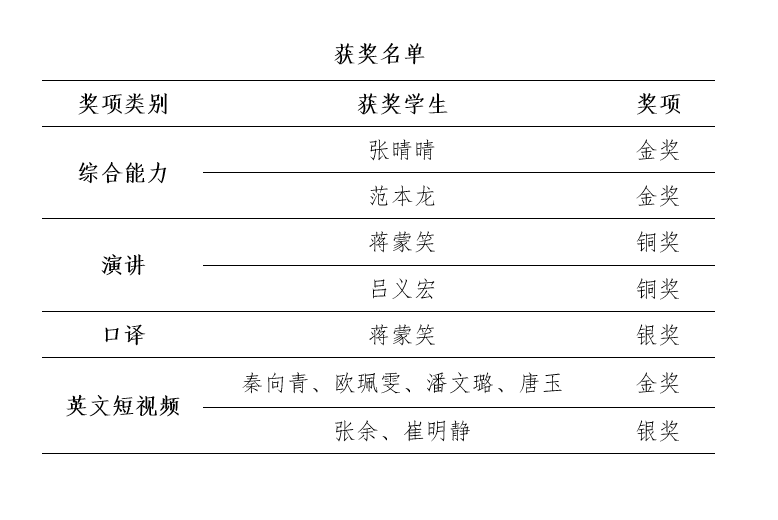 BET体育365登录入口高度重视该项赛事,在参赛选手选拔、团队组建、赛前培训与指导等方面做了工作部署和精心准备。学院始终坚持以培养具有国际视野、语言技能、文化素养的应用型复合型外语人才为目标,通过构建多元化课程体系,实现语言学习与实践应用的深度融合,激励学生广泛参与学科竞赛和学术交流,运用镜头、语言和文字等多种方式,对外讲好中国故事,传播中国声音,展现中国文化的独特魅力。此次大赛成绩喜人,充分展现了我校人才培养提质增效的新成果。